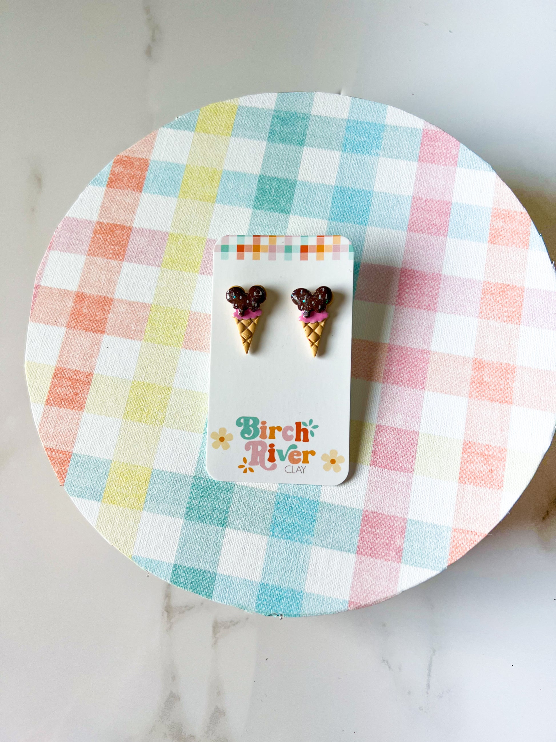 Designed and hand crafted in my Georgia studio using clay and brass- these lightweight earrings are custom pigmented, hand cut, baked, drilled, sanded, finished, and assembled with so much love. Made with polymer clay, brass, and gold-plated surgical steel.
