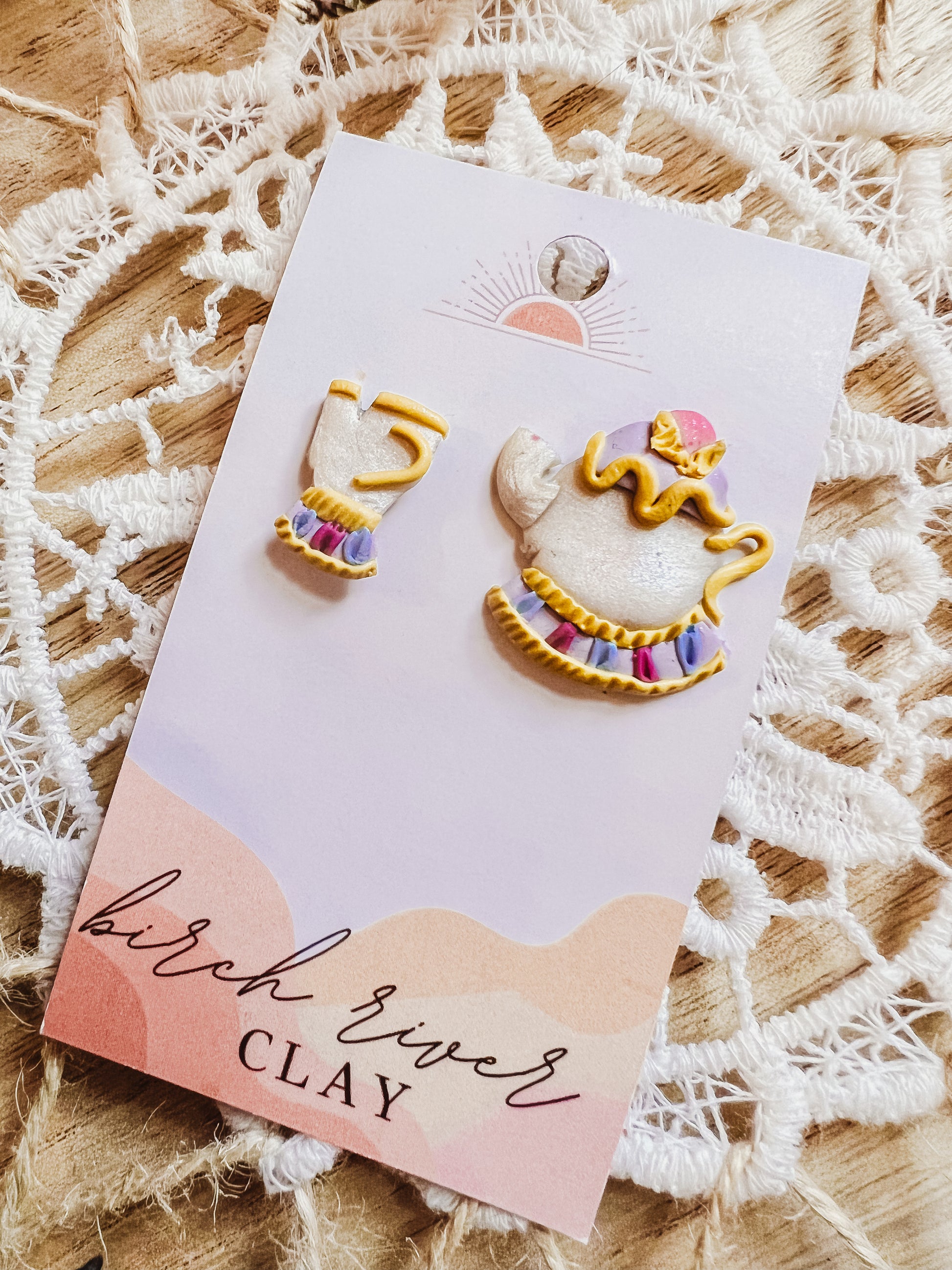 Designed and hand crafted in my Georgia studio using clay and brass- these lightweight earrings are custom pigmented, hand cut, baked, drilled, sanded, finished, and assembled with so much love. Made with polymer clay, brass, and gold-plated surgical steel.