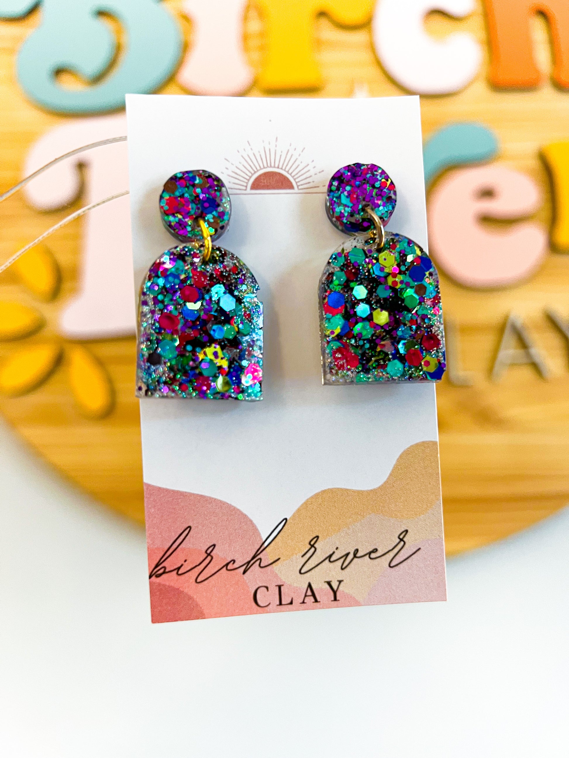 Designed and hand crafted in my Georgia studio using resin and brass- these lightweight earrings are custom pigmented, hand cut, baked, drilled, sanded, finished, and assembled with so much love.
